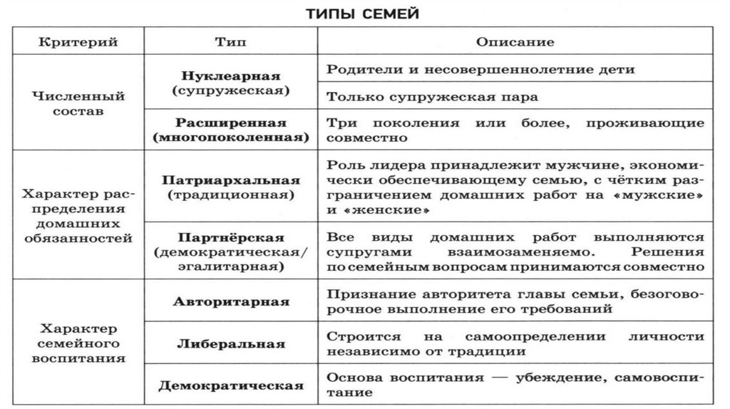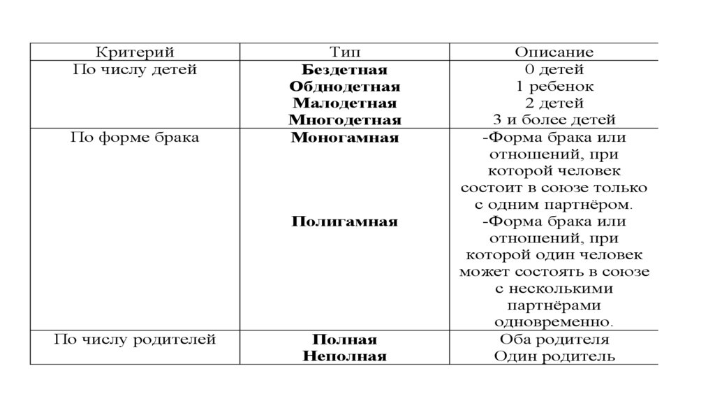 и образцы семейного поведения; юридическое оформление. Это совокупность