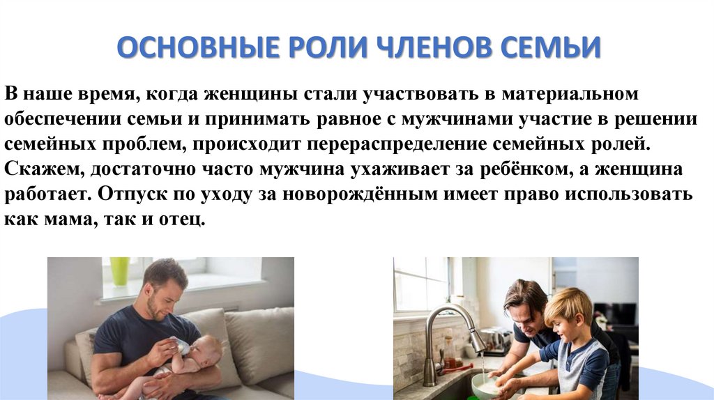 ОСНОВНЫЕ РОЛИ ЧЛЕНОВ СЕМЬИВ наше время, когда женщины стали участвовать в материальном