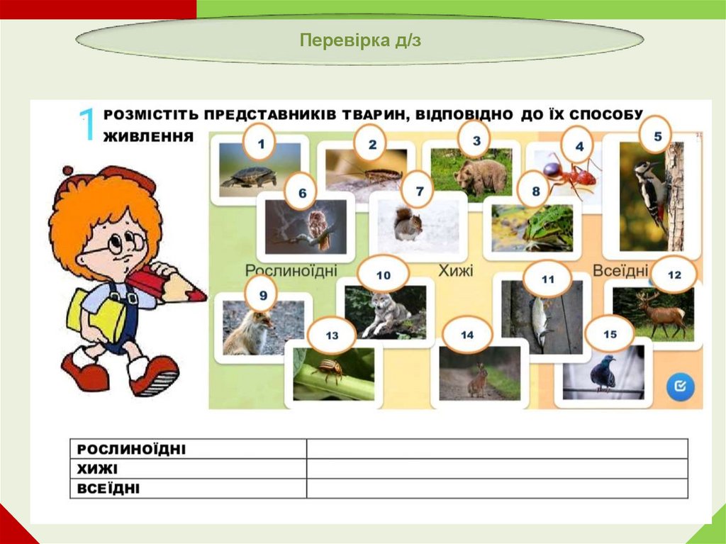 (попелиця, дафнія, срібний карась, кавказька скельна ящірка).