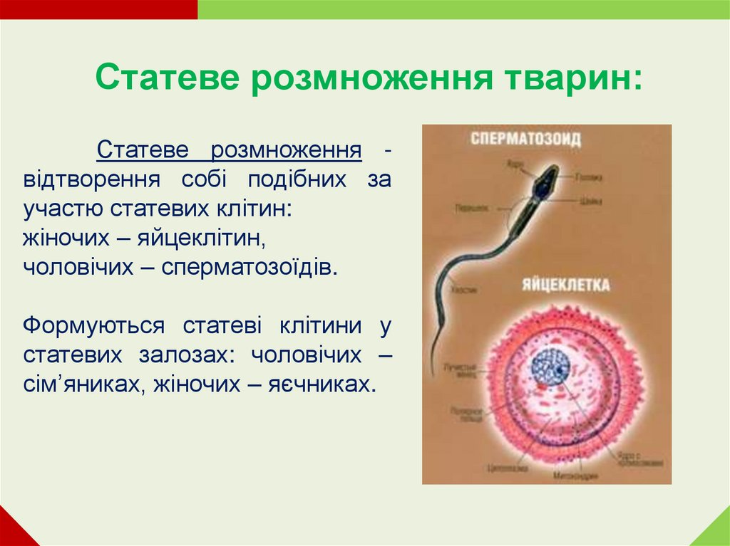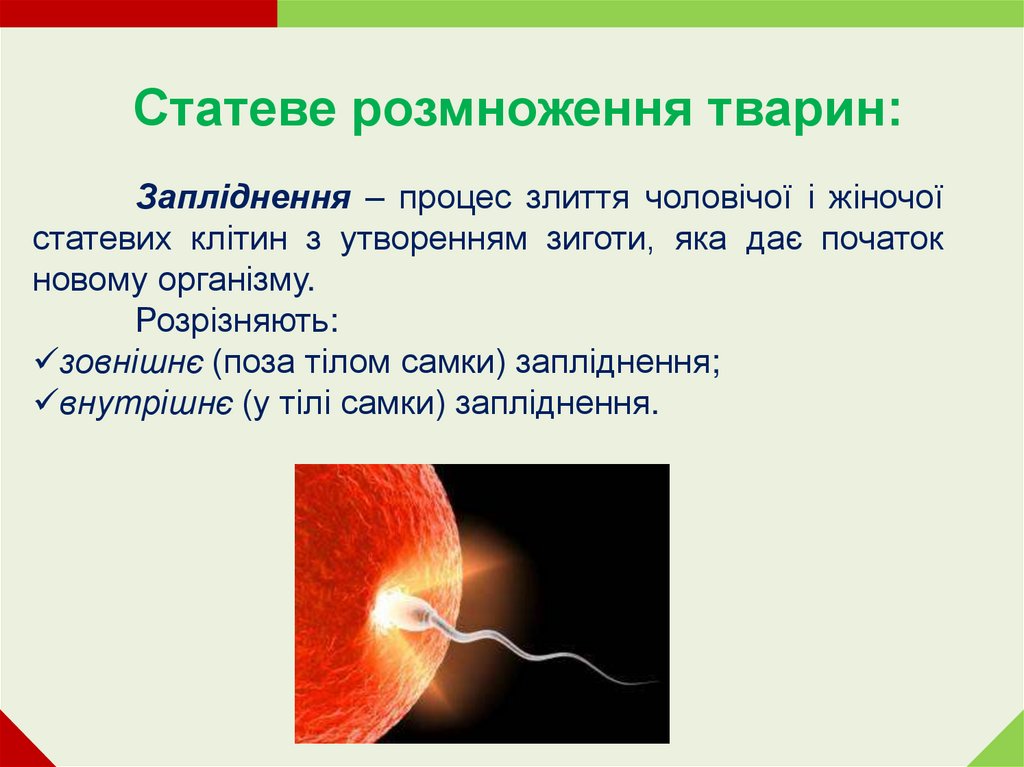 Статеве розмноження тварин:Запліднення – процес злиття чоловічої і жіночої