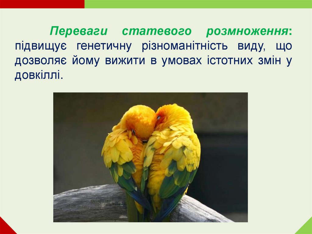 Переваги статевого розмноження:підвищує генетичну різноманітність виду, що