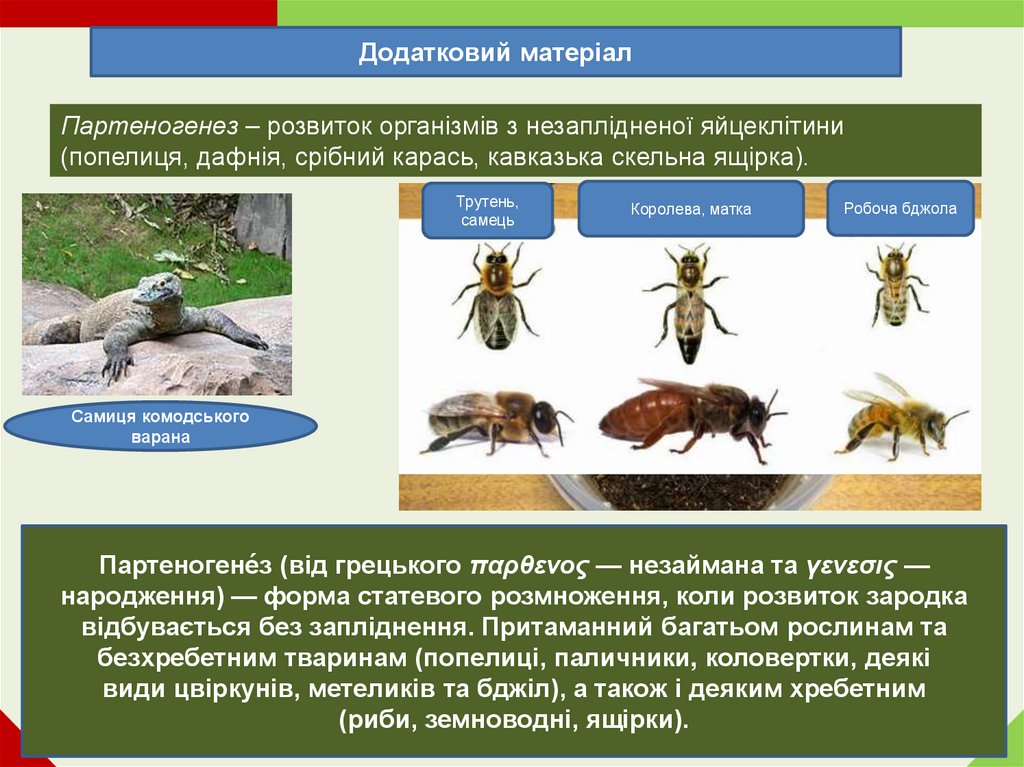 Додатковий матеріалПартеногенез – розвиток організмів з незаплідненої яйцеклітини