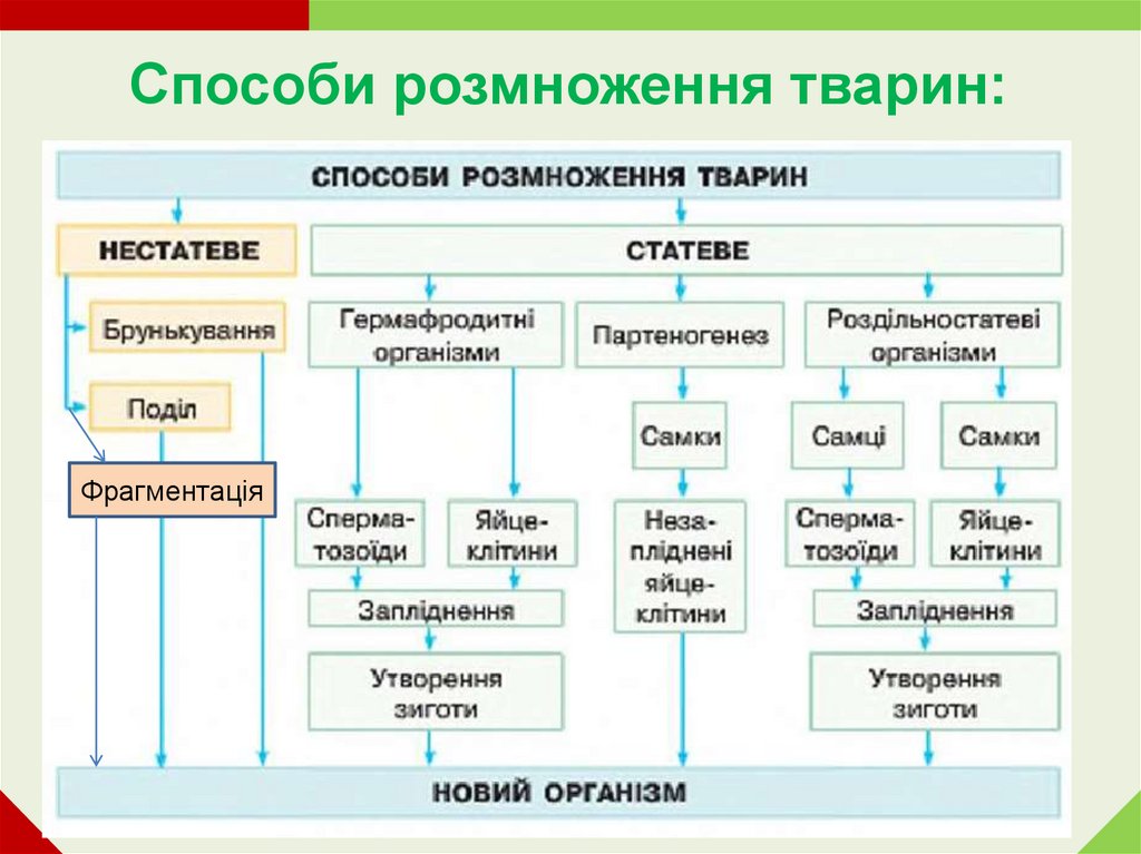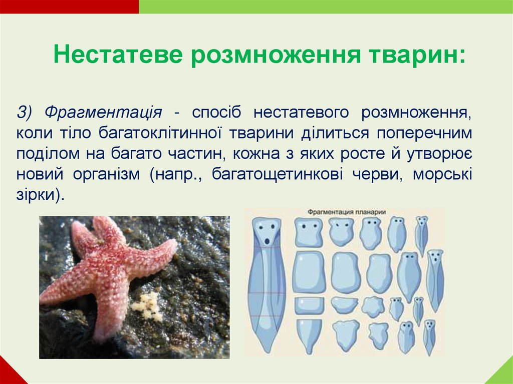 Нестатеве розмноження тварин:3) Фрагментація - спосіб нестатевого розмноження,