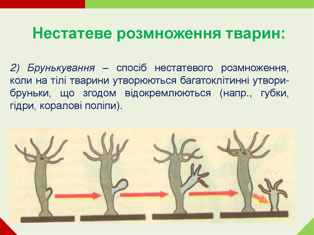 Нестатеве розмноження тварин:2) Брунькування – спосіб нестатевого розмноження,