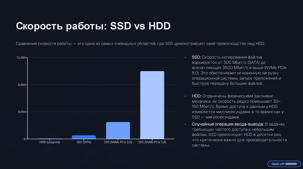 Скорость работы: SSD vs HDDСравнение скорости работы — это одна из самых очевидных областей, где SSD демонстрируют своё превосходство над HDD.
