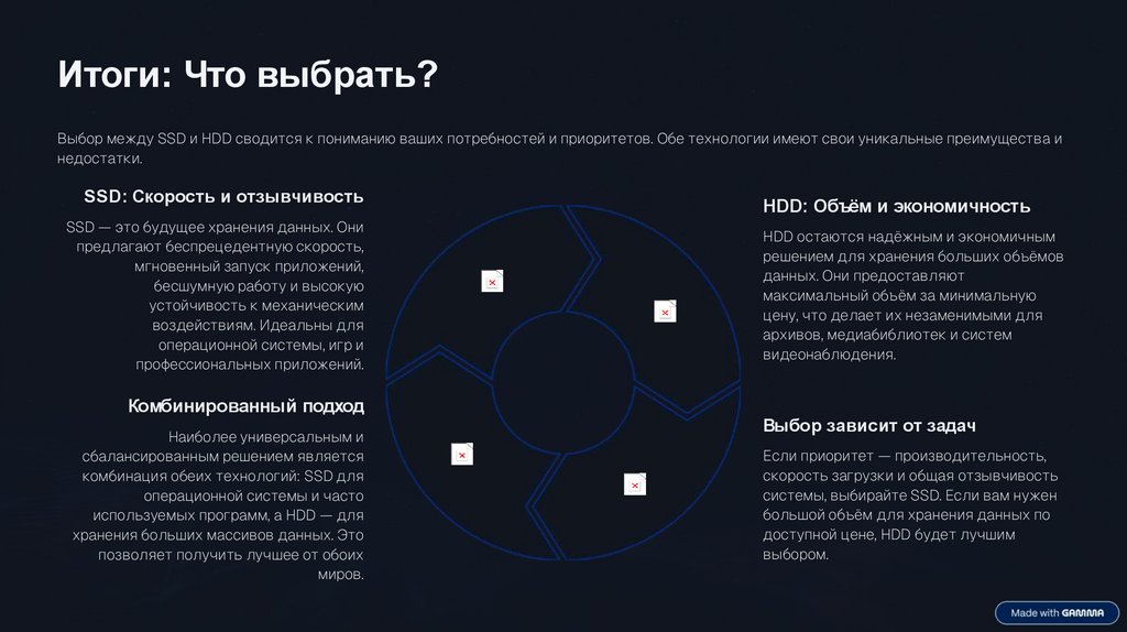 Итоги: Что выбрать?Выбор между SSD и HDD сводится к пониманию ваших потребностей и приоритетов. Обе технологии имеют свои уникальные преимущества и