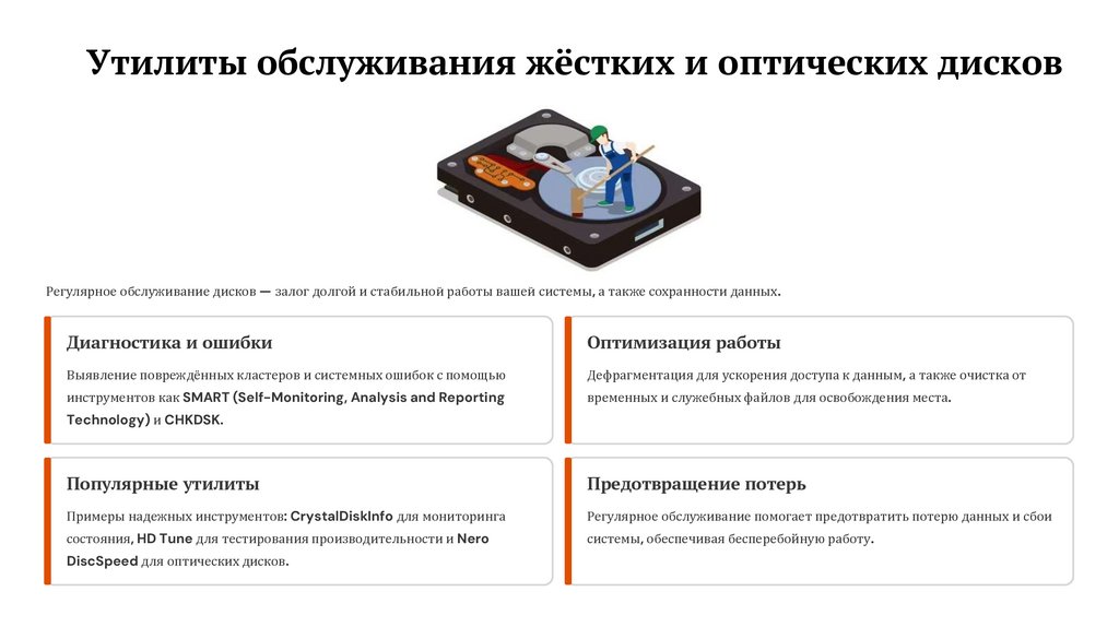 Регулярное обслуживание жёстких и оптических дисков продлевает жизнь ПК и защищает ценные данные от потери.