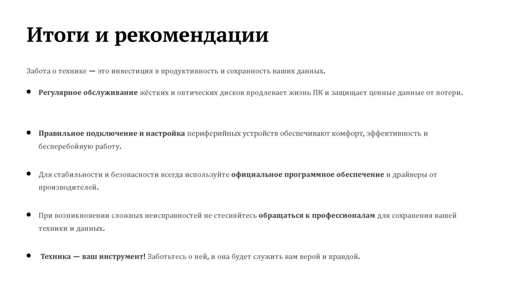 Итоги и рекомендацииЗабота о технике — это инвестиция в продуктивность и сохранность ваших данных.