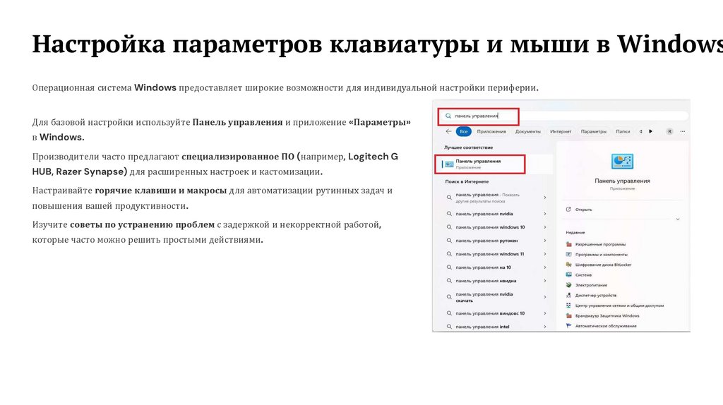 Настройка параметров клавиатуры и мыши в WindowsОперационная система Windows предоставляет широкие возможности для индивидуальной настройки периферии.