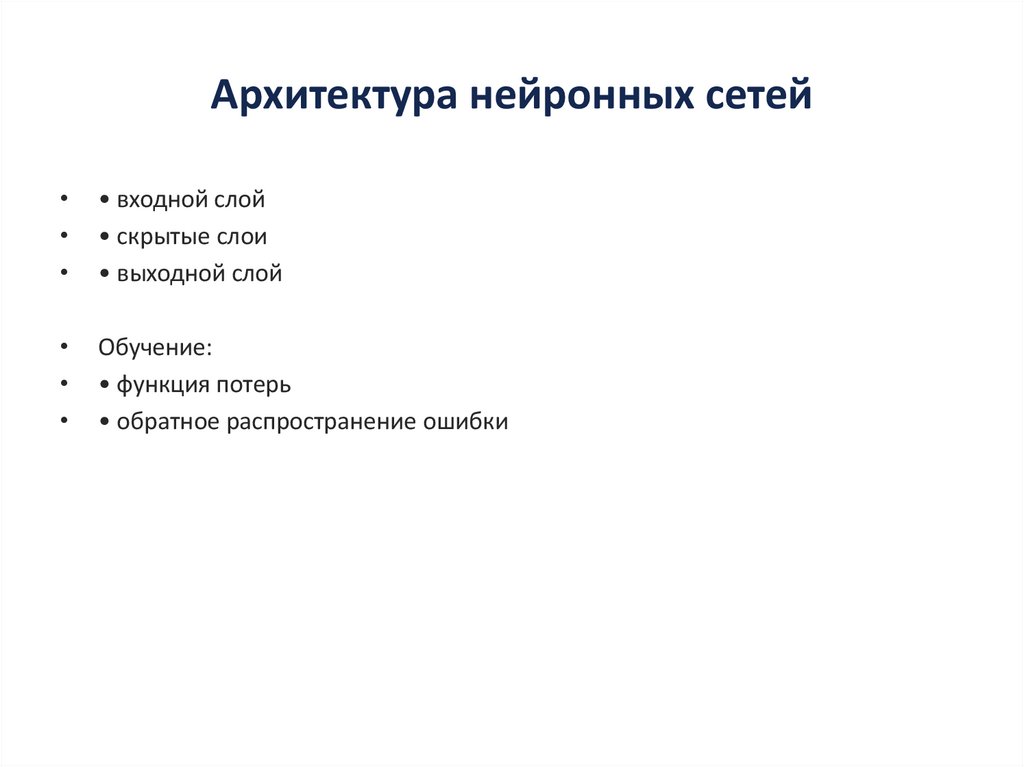 Архитектура нейронных сетей• входной слой
