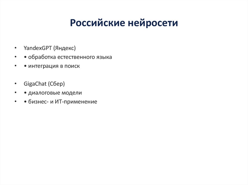 • Российские нейросети активно развиваются
