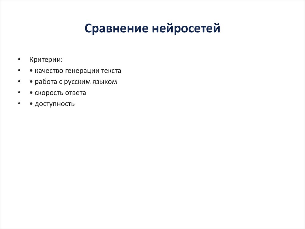 Сравнение нейросетейКритерии: