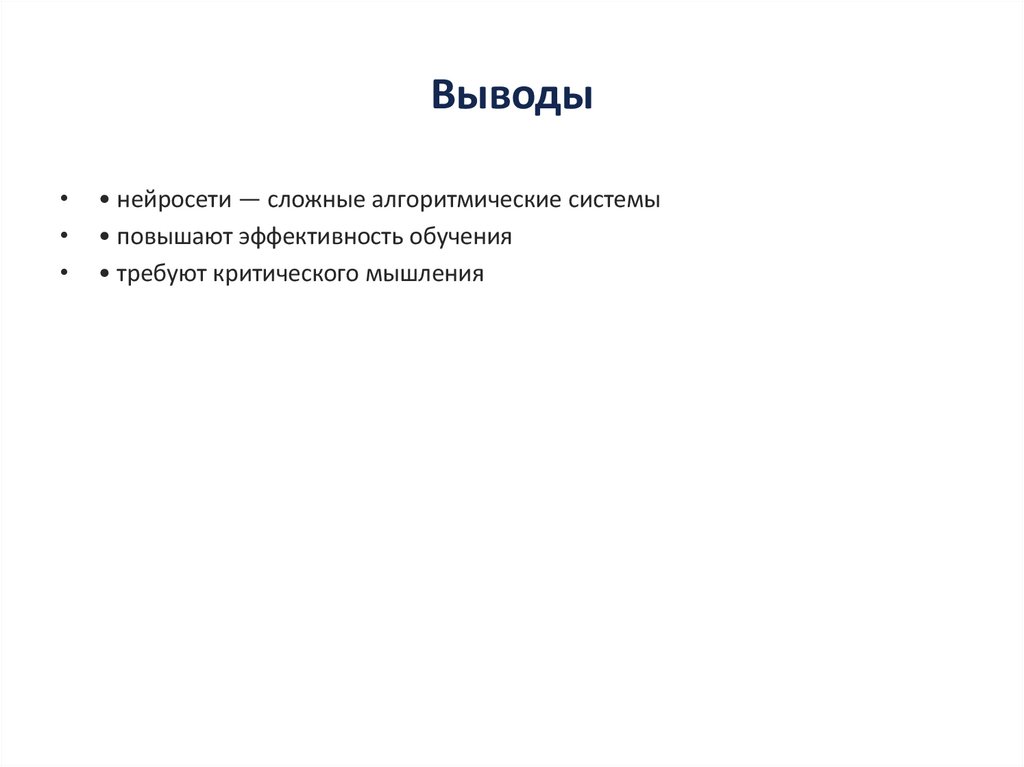 Выводы• нейросети — сложные алгоритмические системы
