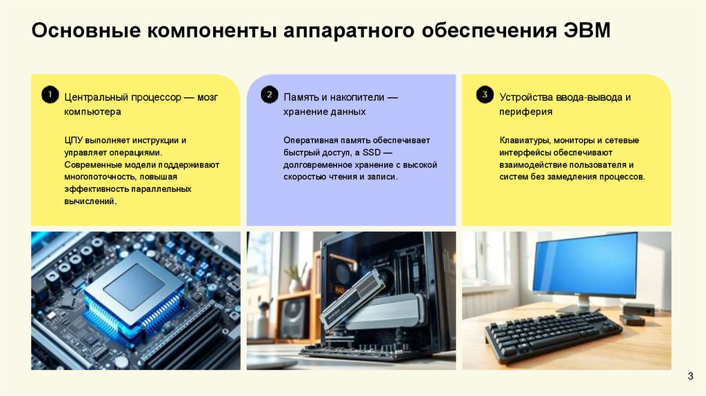 Основные компоненты аппаратного обеспечения ЭВМЦентральный процессор — мозг