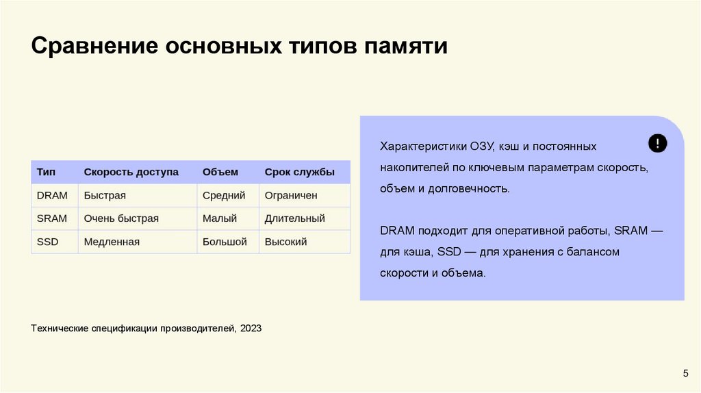 Сравнение основных типов памятиХарактеристики ОЗУ, кэш и постоянных