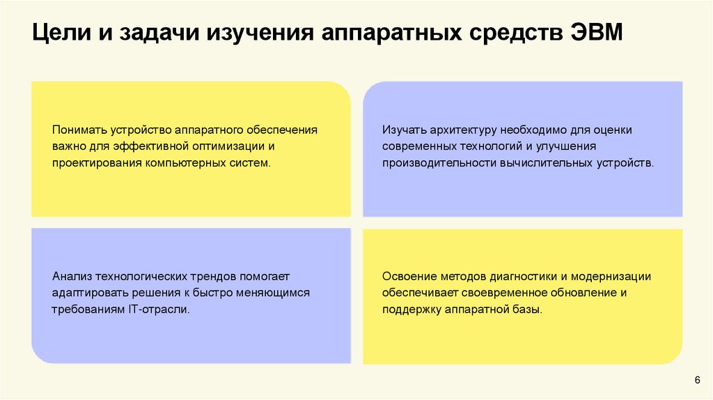 Цели и задачи изучения аппаратных средств ЭВМПонимать устройство аппаратного обеспечения