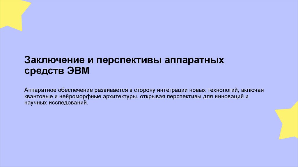 Заключение и перспективы аппаратныхсредств ЭВМ