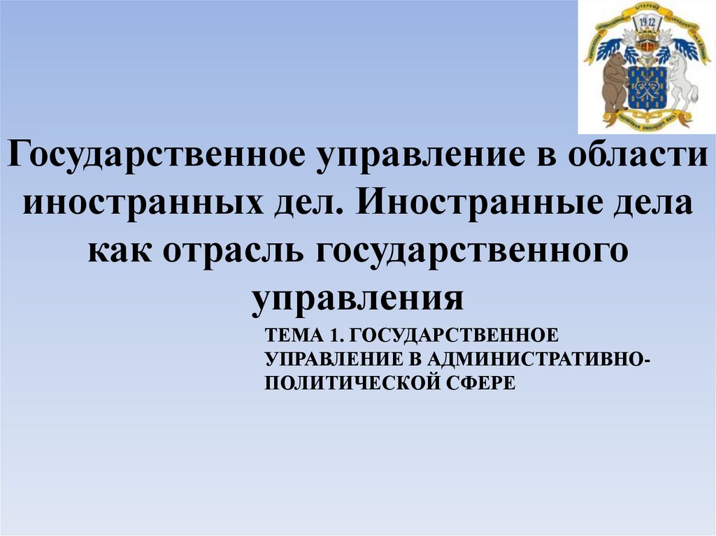 1. Государственное управление в области иностранных дел. Иностранные дела как отрасль государственного управления