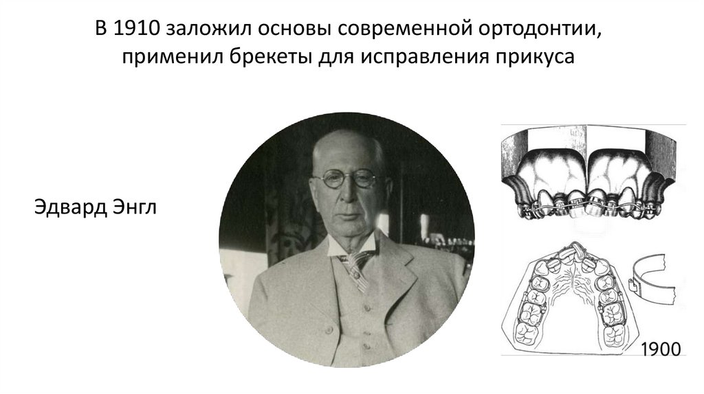 В 1910 заложил основы современной ортодонтии,применил брекеты для исправления прикуса