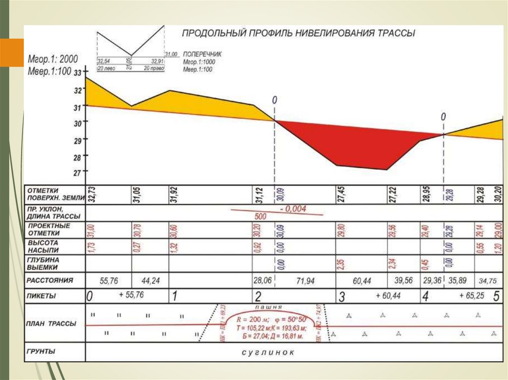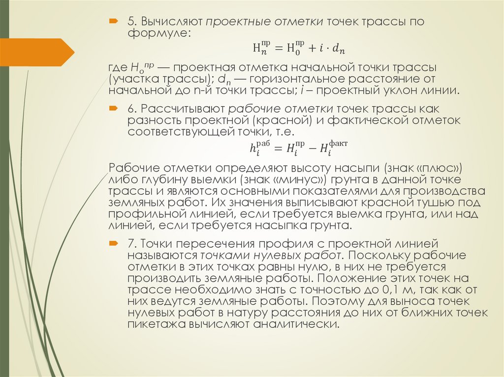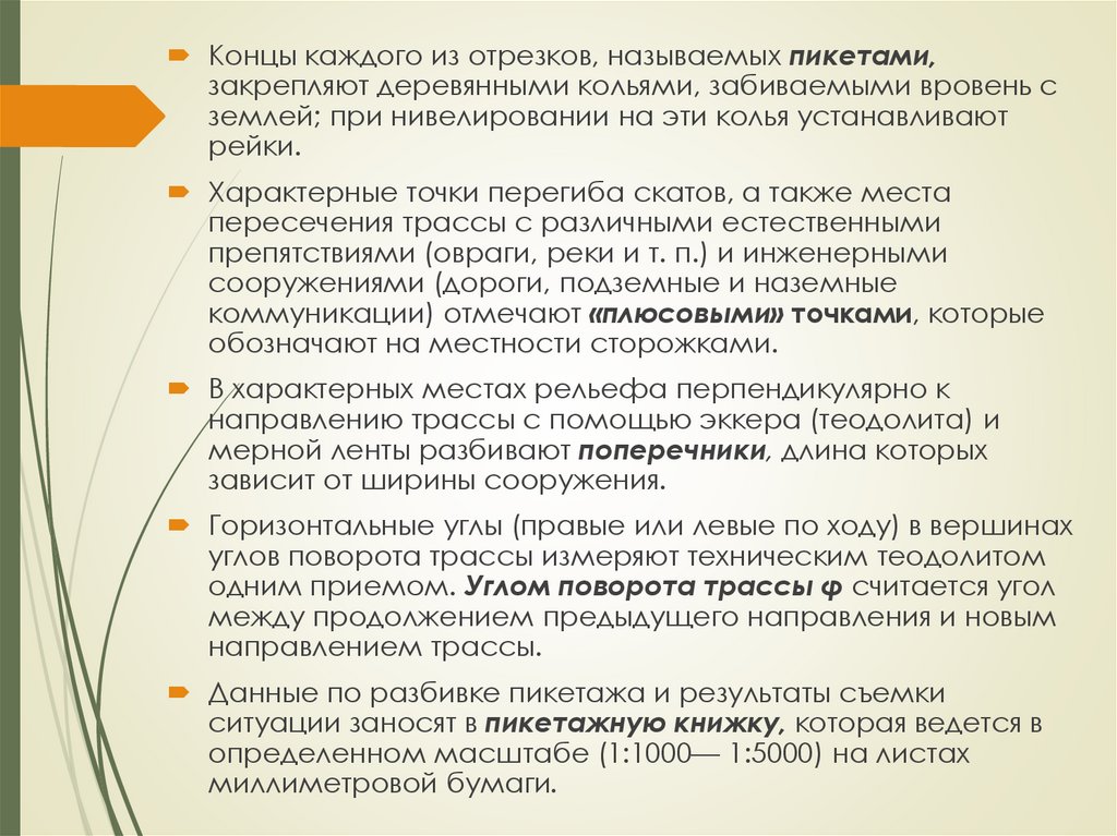Для определения высот точек трассы (пикетных, плюсовых,точек поперечников) по трассе прокладывают нивелирный
