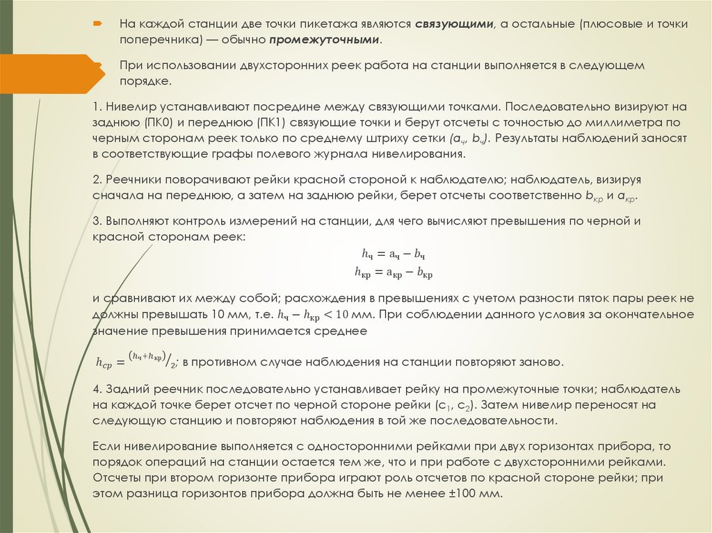 На каждой станции две точки пикетажа являются связующими, а остальные (плюсовые и точкипоперечника) — обычно промежуточными.