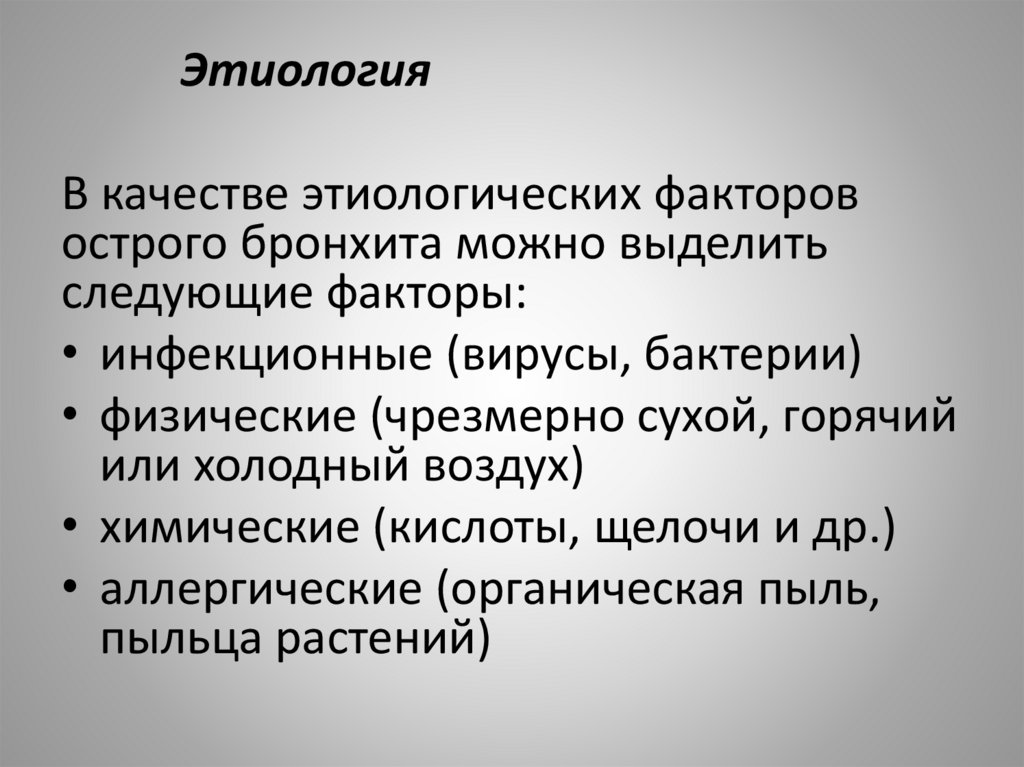 1. По этиологии различают:А. Бронхиты инфекционного происхождения