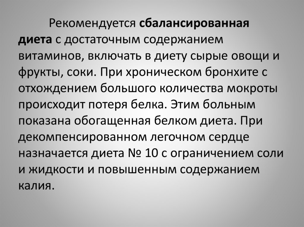 фрукты, соки. При хроническом бронхите с
