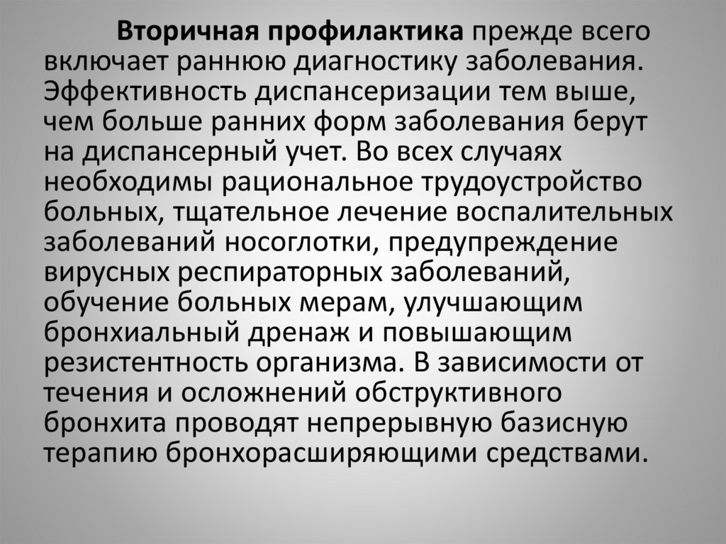 Вторичная профилактика прежде всеговключает раннюю диагностику заболевания.