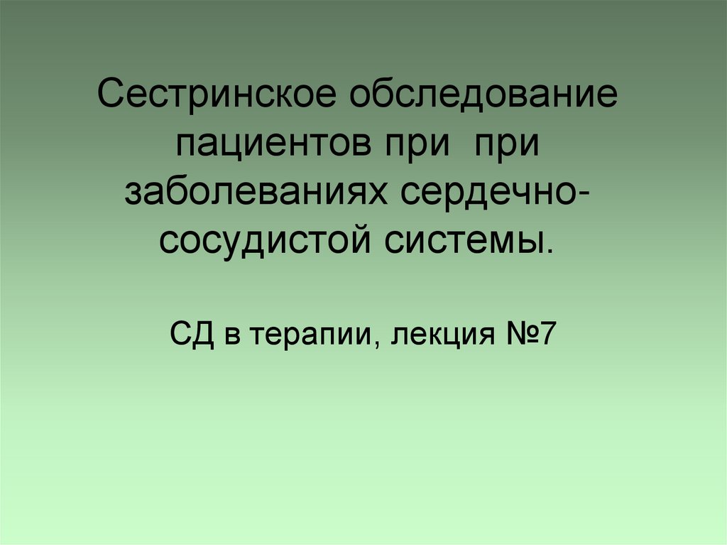1. Сестринское обследование пациентов при при заболеваниях сердечно-сосудистой системы.