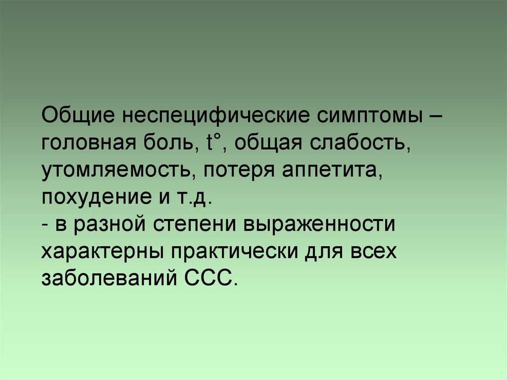 Общие неспецифические симптомы –головная боль, t°, общая слабость,