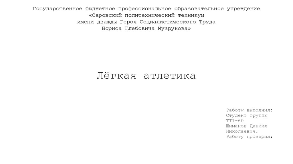 Лёгкая атлетика — один из старейших и наиболее массовых видов спорта,включающий состязания по бегу, прыжкам, метаниям и ходьбе.