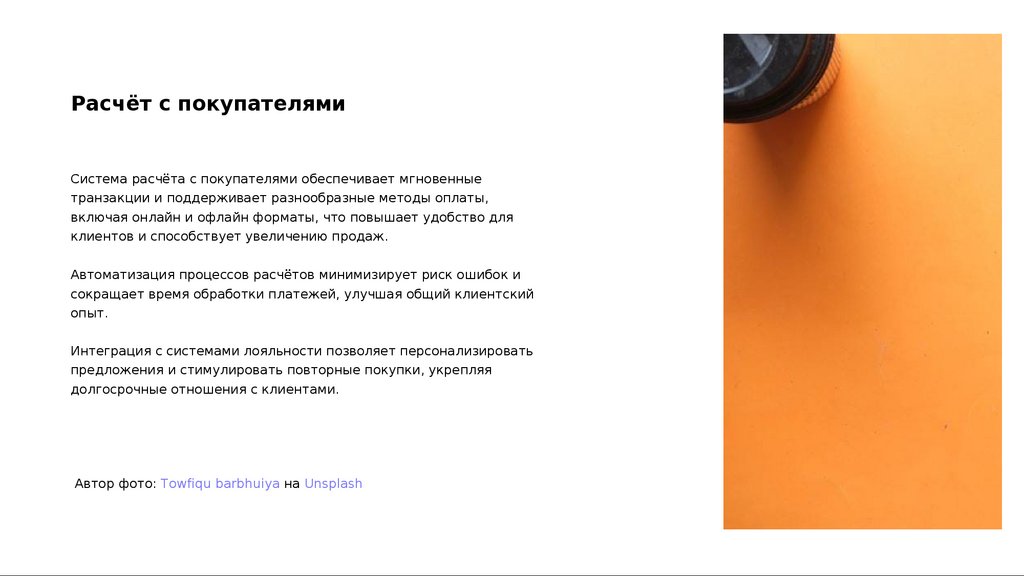 Расчёт с покупателямиСистема расчёта с покупателями обеспечивает мгновенные