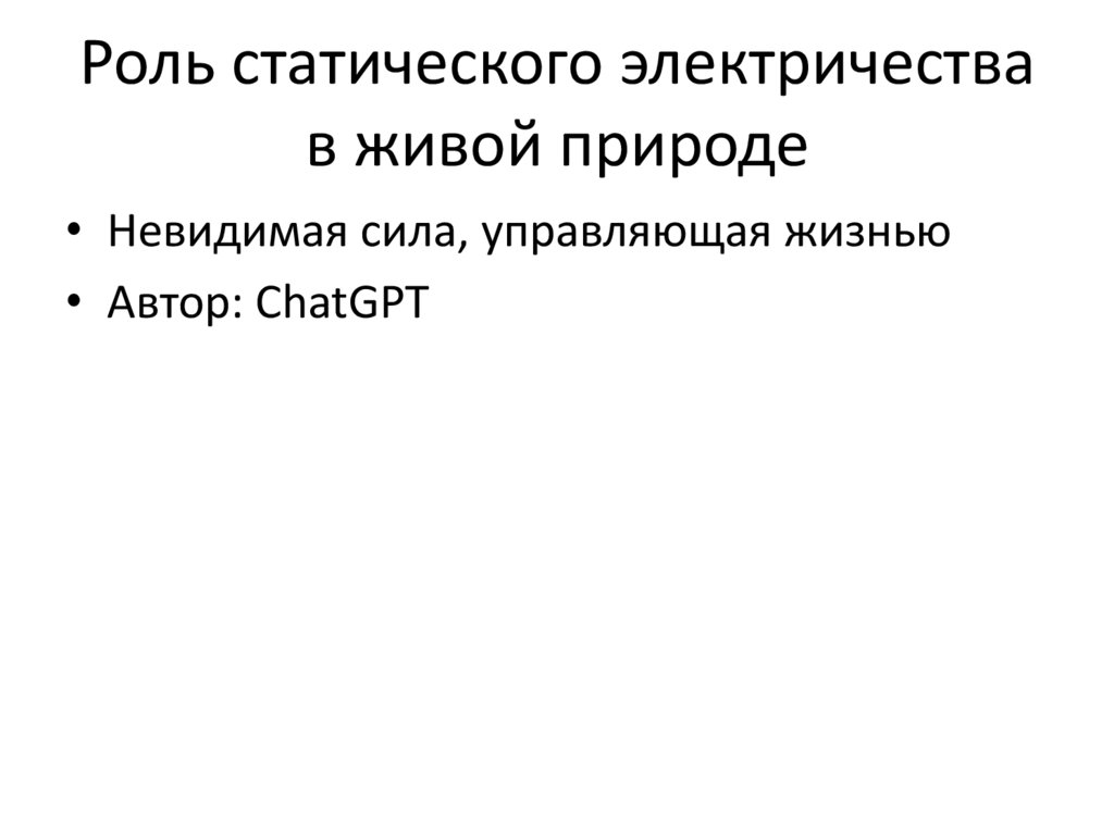 Роль статического электричествав живой природе