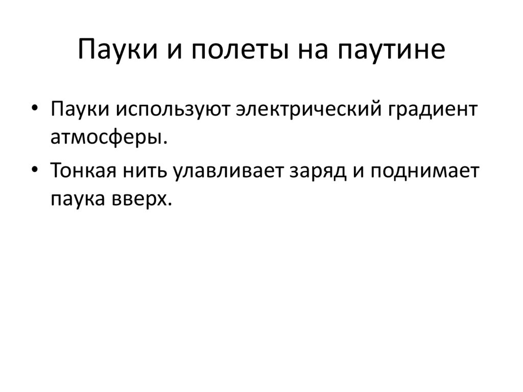 Пауки и полеты на паутине• Пауки используют электрический градиент