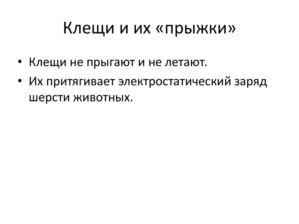 Клещи и их «прыжки»• Клещи не прыгают и не летают.