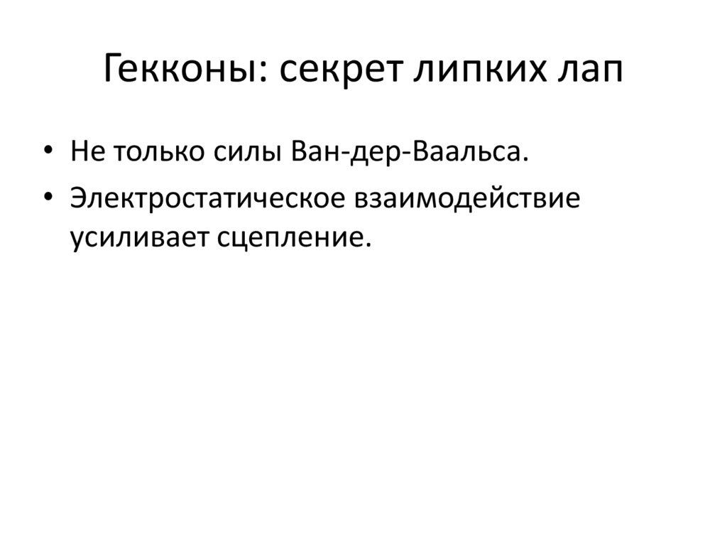Гекконы: секрет липких лап• Не только силы Ван-дер-Ваальса.