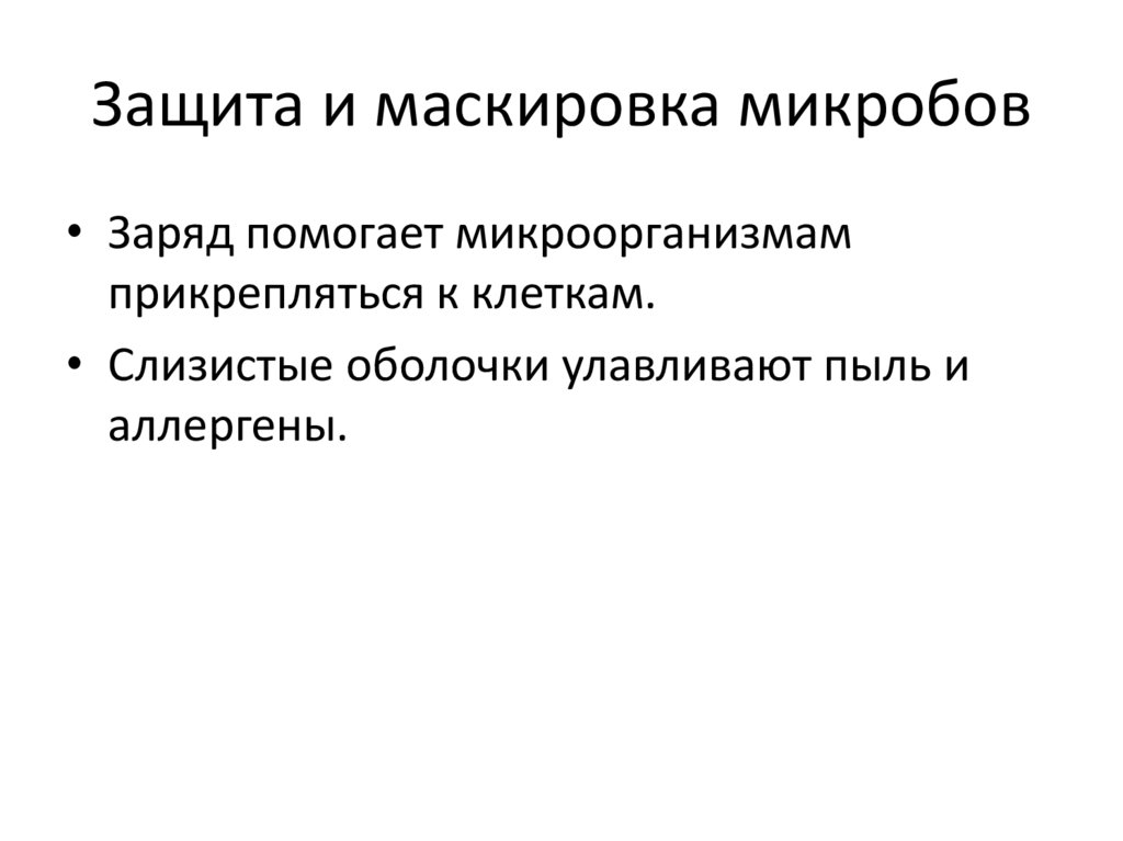 Защита и маскировка микробов• Заряд помогает микроорганизмам