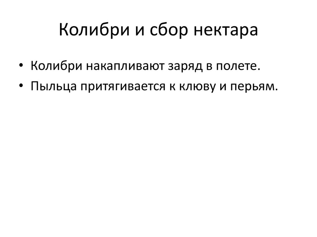 Колибри и сбор нектара• Колибри накапливают заряд в полете.