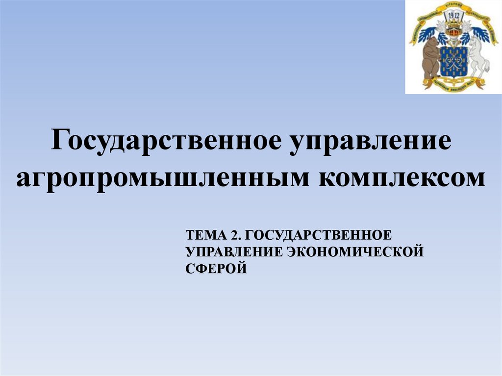 ТЕМА 2. ГОСУДАРСТВЕННОЕУПРАВЛЕНИЕ ЭКОНОМИЧЕСКОЙ