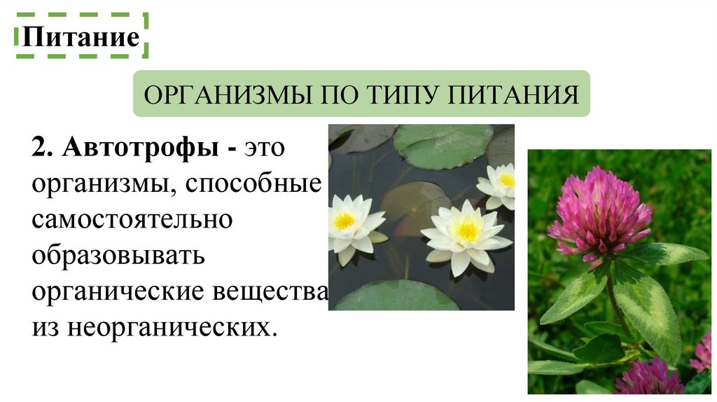 ПитаниеОРГАНИЗМЫ ПО ТИПУ ПИТАНИЯ