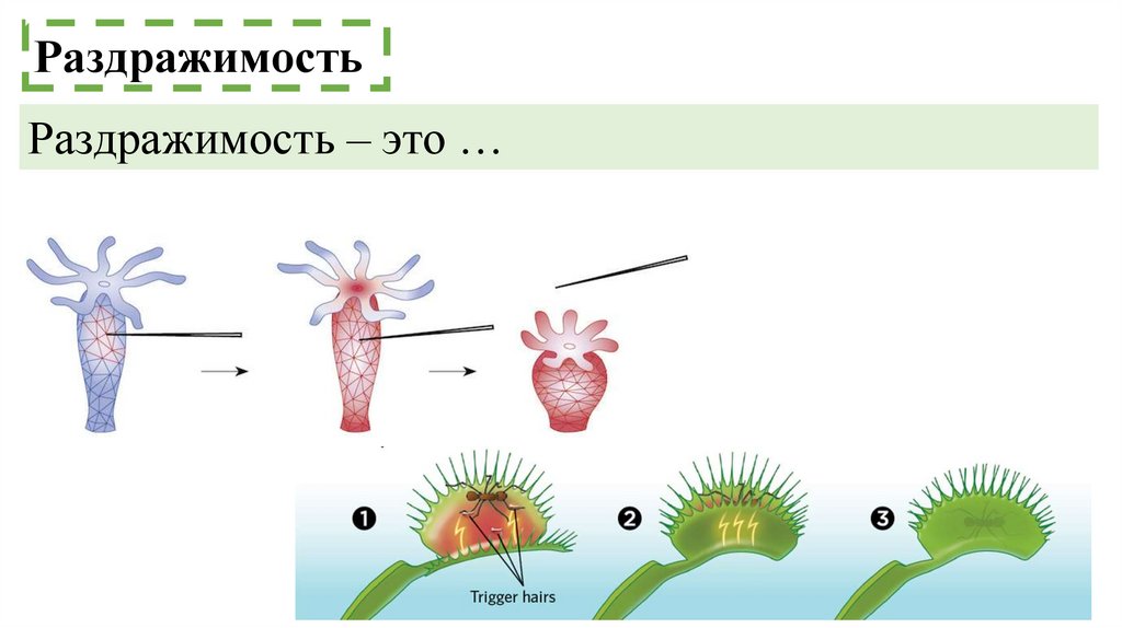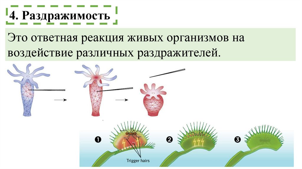 4. РаздражимостьЭто ответная реакция живых организмов на