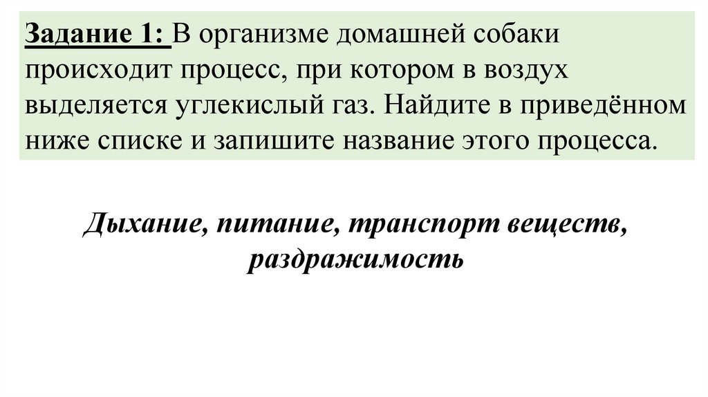 Задание 1: В организме домашней собакипроисходит процесс, при котором в воздух