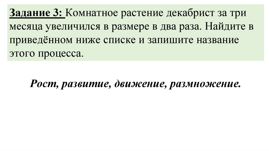 Задание 3: Комнатное растение декабрист за тримесяца увеличился в размере в два раза. Найдите в