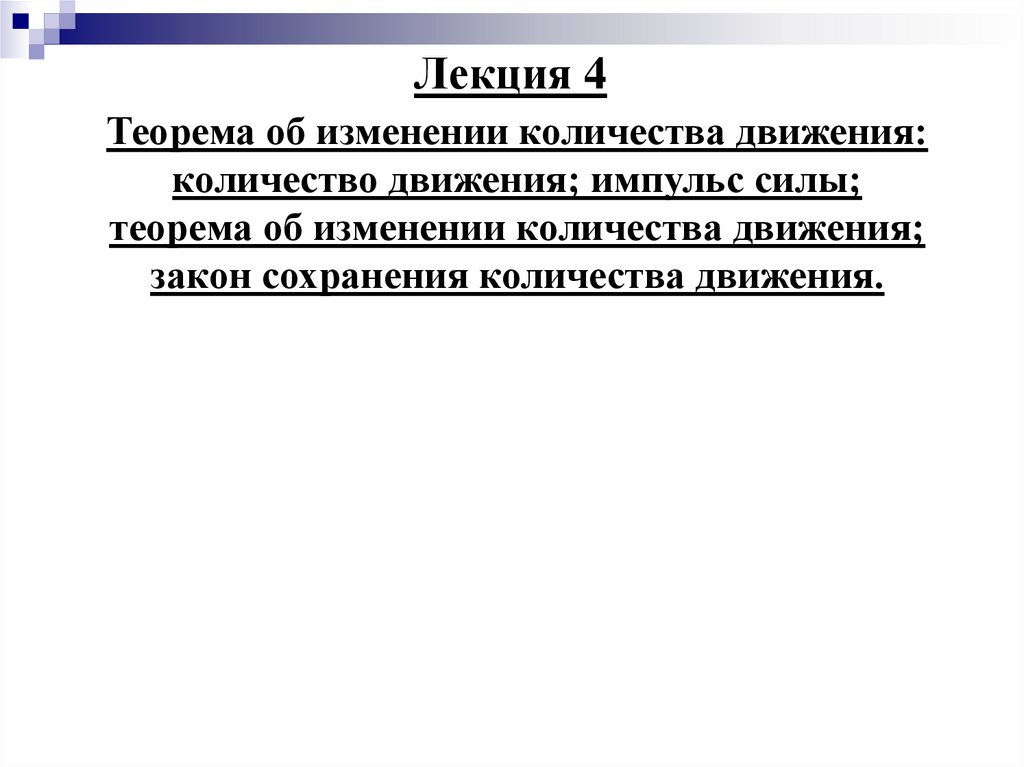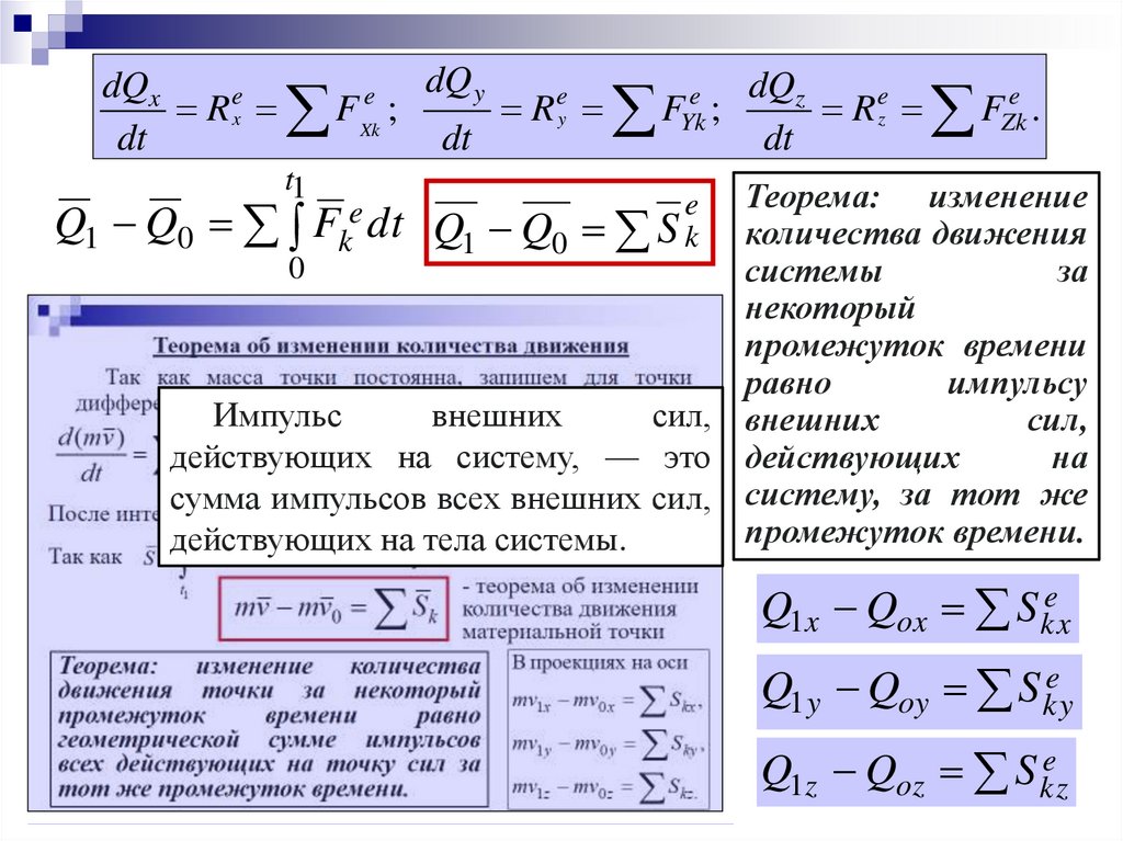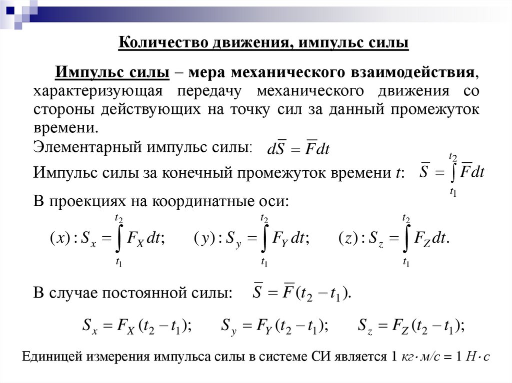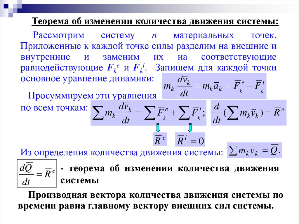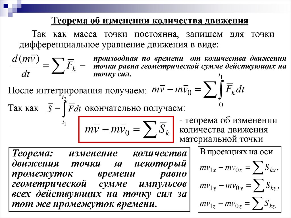 Теорема об изменении количества движения:количество движения; импульс силы;