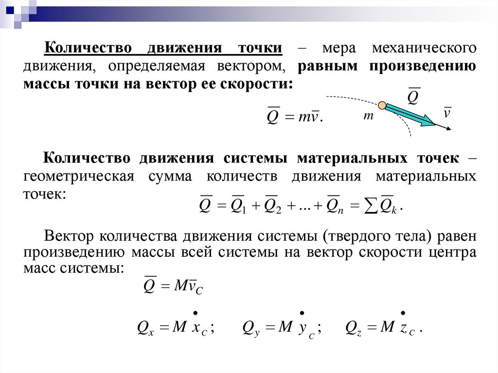 Количество движения точки – мера механическогодвижения, определяемая вектором, равным произведению