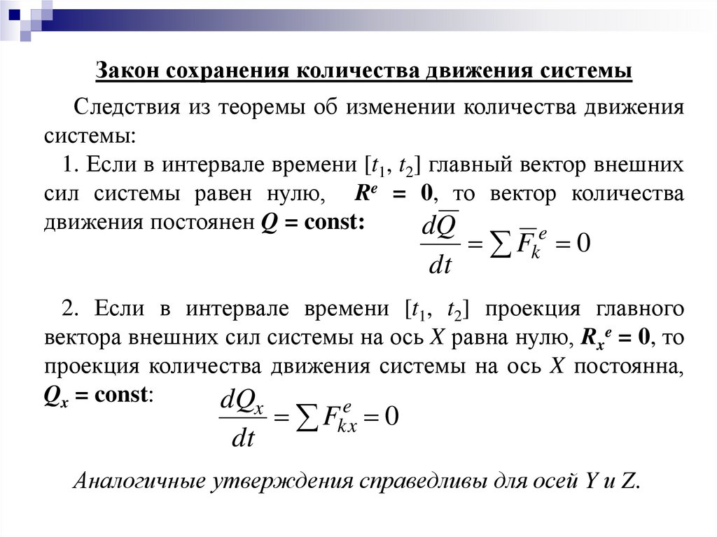 Закон сохранения количества движения системыСледствия из теоремы об изменении количества движения