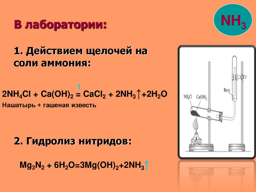 2NH4Cl + Ca(OH)2 = CaCl2 + 2NH3↑+2H2O