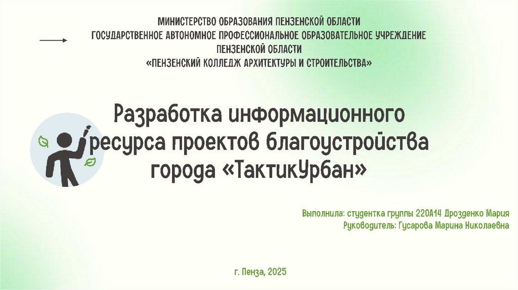 1. Разработка информационного ресурса проектов благоустройства города «ТактикУрбан»