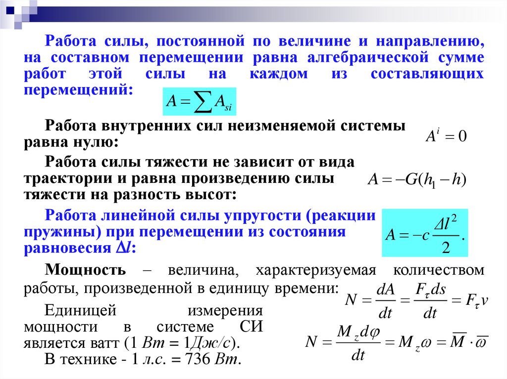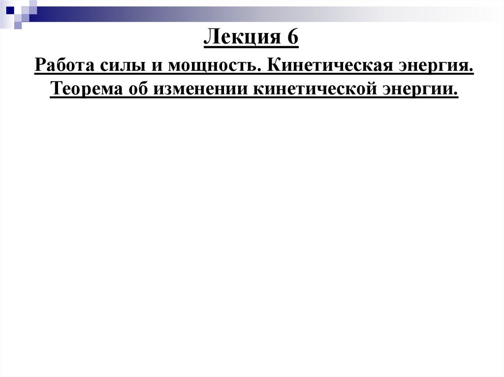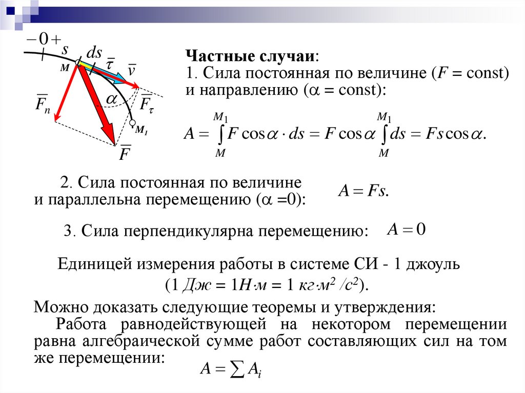 Работа силы и мощность. Кинетическая энергия.Теорема об изменении кинетической энергии.