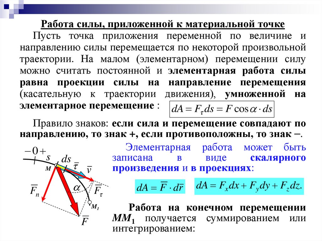 Работа силы, приложенной к материальной точкеПусть точка приложения переменной по величине и